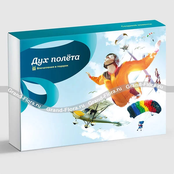 В подарочный набор входит сертификат на одно из впечатлений на выбор: полет на мотопараплане, полет на дельталете, полет на флайборде, самостоятельный прыжок с парашютом и т.д.